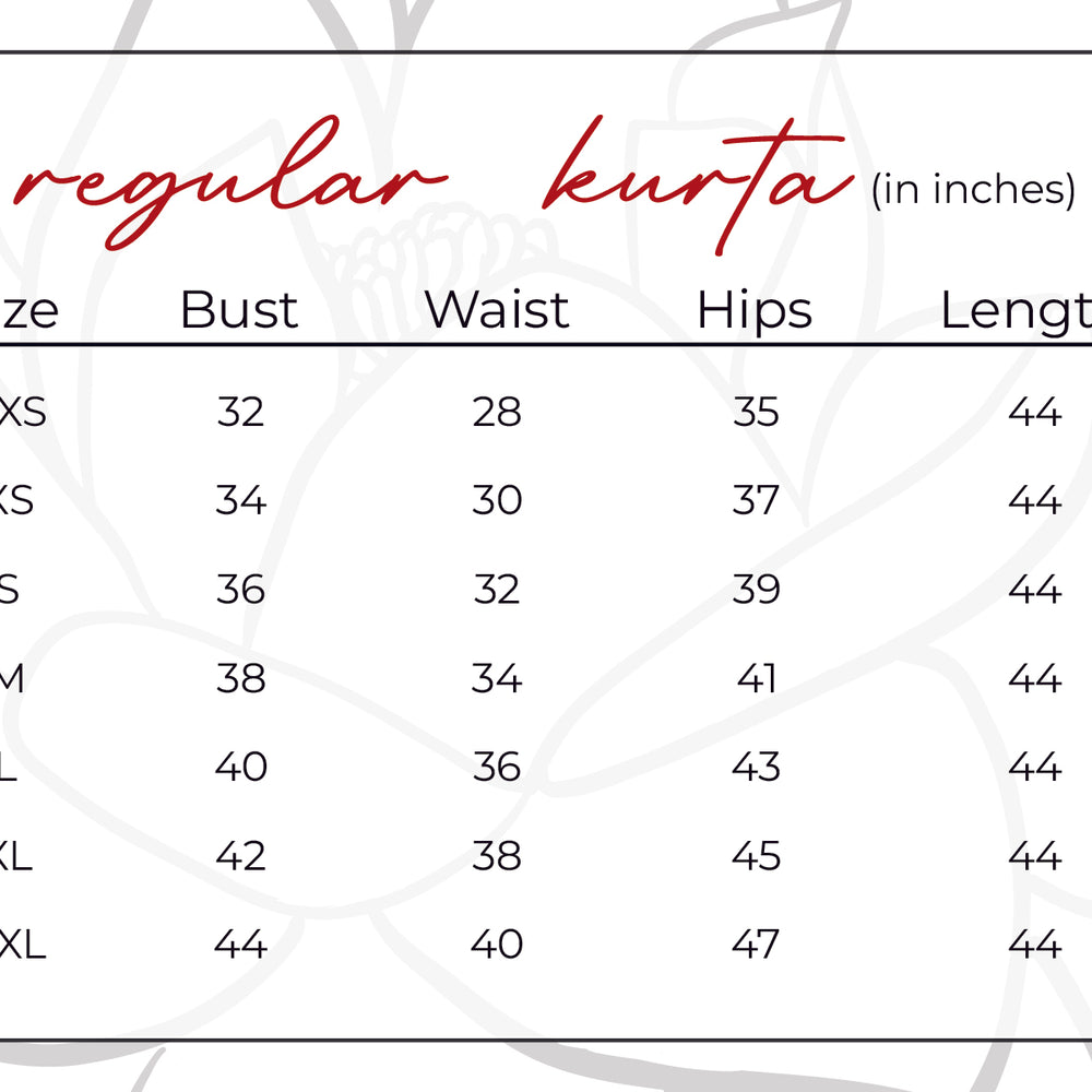 Our garments are made to standard sizes or your custom measurements. A fitting at our Mumbai studio is recommended. If that's not possible, a local tailor can assist with minor adjustments.