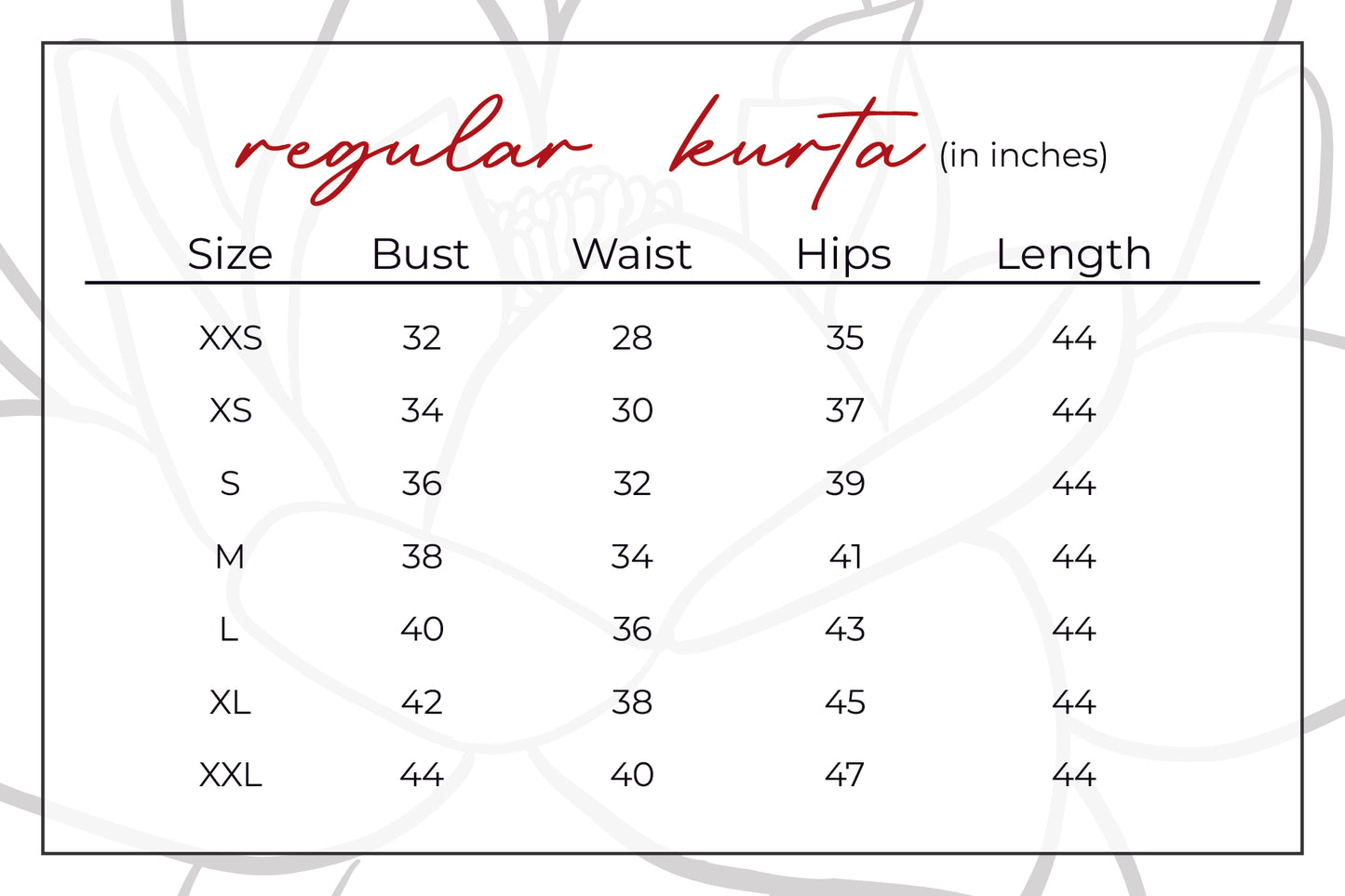 Kindly refer to the sizing guide for standard sizes before placing an order.